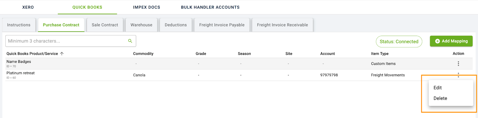 10. You can Delete or Edit the mapping using 3 dot menu against each Accounts