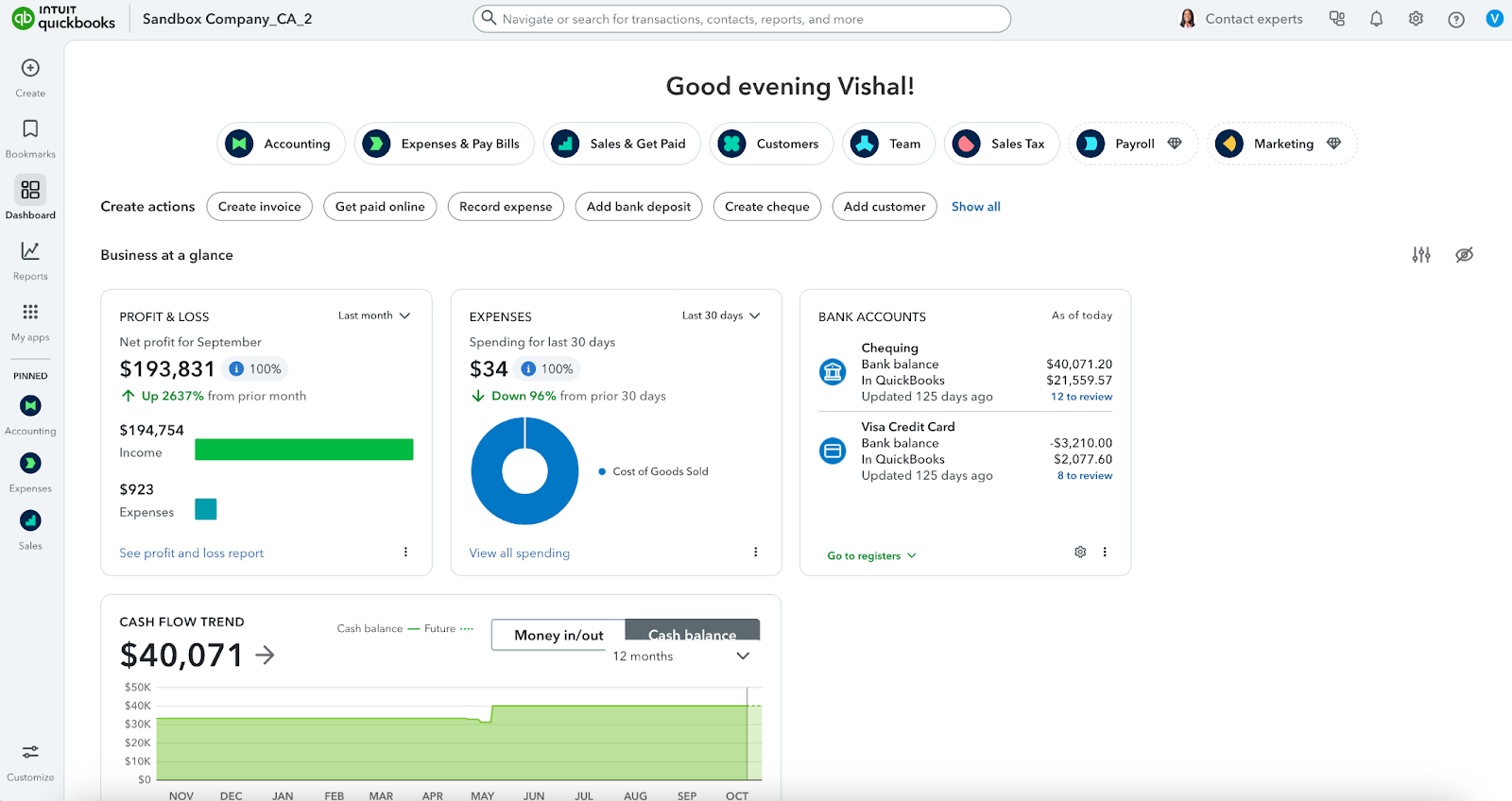 1. Consider the below screenshot as the Quick Books Dashboard.