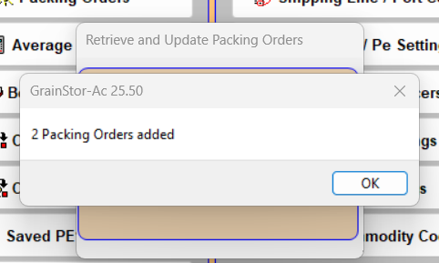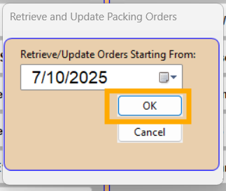 Retrieval dates will always be backdated 1-2 weeks from today. Select ‘OK’ to begin retrieving Pack Orders from AgriChain.