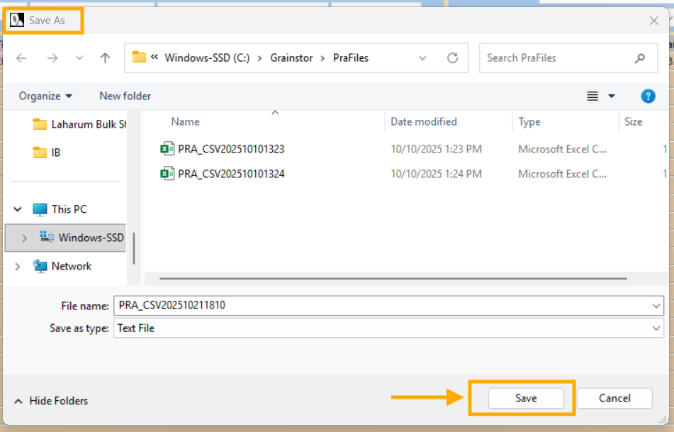 A pop-up will appear asking you to save the PRA file. Proceed by selecting ‘Save’.