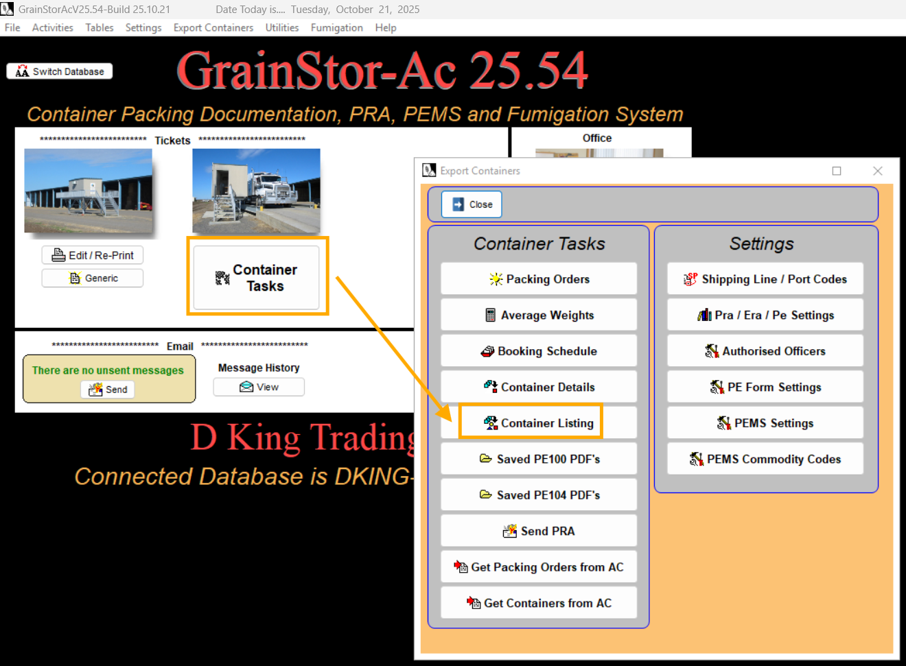 Grainstor can also be used to submit container records to PEMS. Before doing so, please ensure that you have met the Prerequisites for submitting PRA & PEMS on Grainstor (click here).