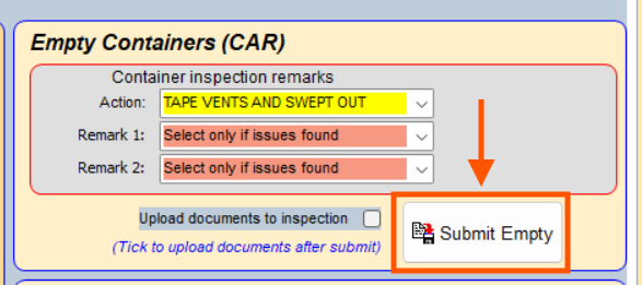Proceed to submit the ‘Empty Containers’ inspection records to PEMS first by selecting ‘Submit Empty’.