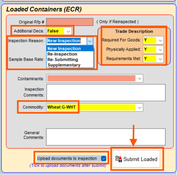 Please note that an ‘Empty Container’ record must always be submitted first before a ‘Loaded Container’ record.